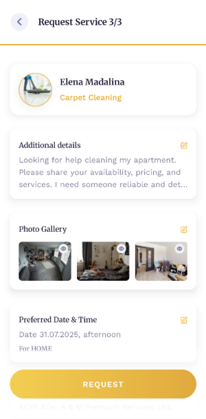 From urgent repairs to regular home help, request the services you need, when you need them. Need a plumber, cleaner or dog walker? Send a request straight from the app!